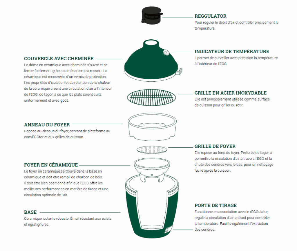 Avec votre EGG et les nombreux accessoires disponibles, à commencer par le convEGGtor (le bouclier thermique en céramique), vous pourrez réaliser tous les types de cuisson.