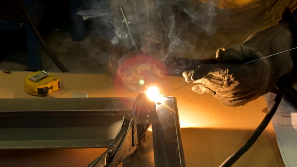 Après le pliage, vient l’étape clé de la soudure. Les pièces sont assemblées selon un procédé rigoureux, combinant soudures TIG (Tungsten Inert Gas) et fixations invisibles, pour garantir une solidité structurelle à toute épreuve, sans altérer l’esthétique.